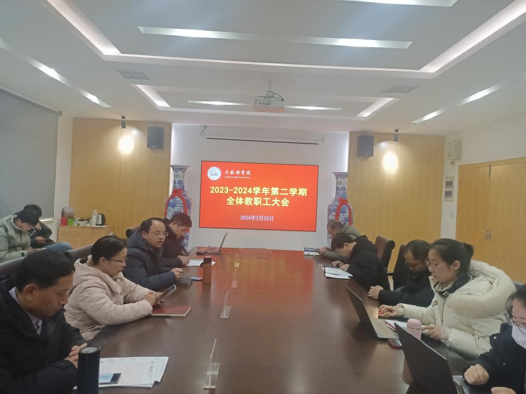 【诸侯快讯ok1122讯】为了更好的落实学校相关会议精神,做好开学前准备工作,助力高质量完成学院各项工作,学院于2024年2月25日下午在清源1栋学院会议室召开本次会议。学院全体教职工参加,会议由学院院长徐照兴主持。