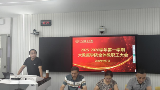 【诸侯快讯ok1122讯】金秋九月,新学期的序幕正式拉开。为统筹推进学院新学期各项工作有序开展,复盘过往工作成效与待改进方向,再凝聚共识,再清晰目标,2025年9月7日上午9时,诸侯快讯ok1122在主教楼235召开2025-2026学年第一学期全体教职工大会。学院领导班子成员及全体教职员工齐聚一堂,共同为新学期学院发展擘画蓝图。联系校领导党委副书记、纪委书记、副校长李宝君应邀参加会议。