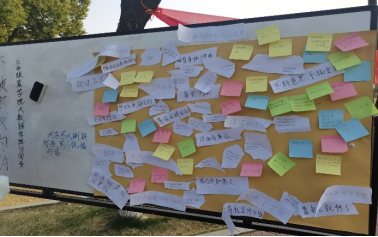 活动进行中,女孩们用一张张便签纸写下令人暖心的语句,她们将温柔和烂漫传递下去,做不被定义的女孩。我们可以看到新时代独立的女大学生在不断的释放自己的魅力与光芒,她们自信昂扬,美丽大方,不卑不亢,她们大胆的说出自己的想法和认知,人生是旷野,不是轨道。她们互相鼓励促进,宣传正确的价值观,呼吁女生们要为努力活成自己想要的样子,“最美女生”是永远不能被定义的!