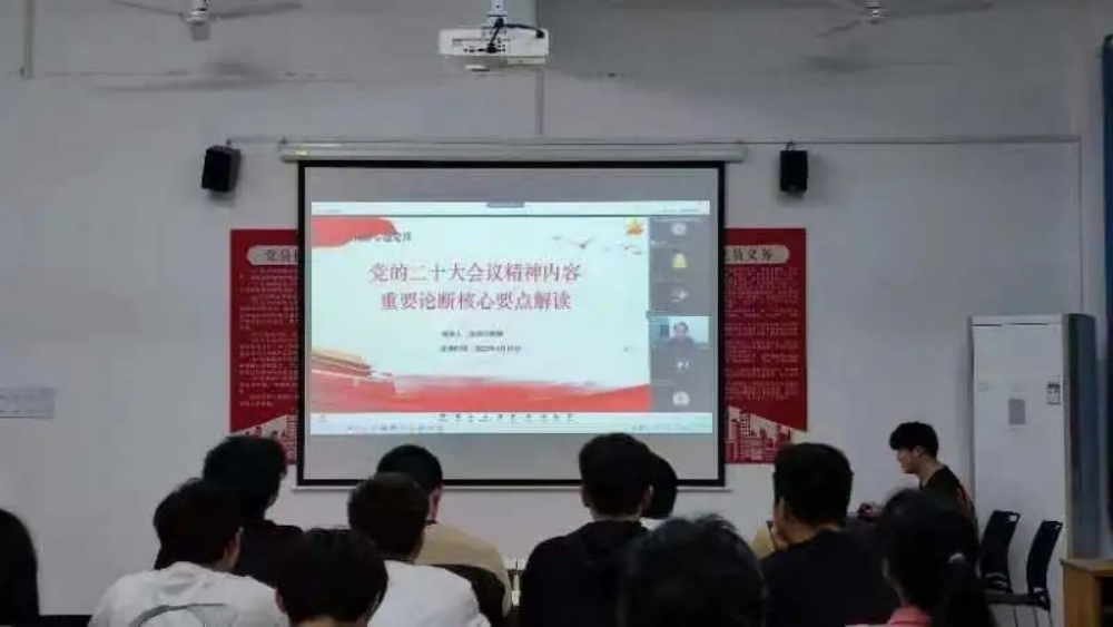 课程开始,徐照兴院长讲述道:党的二十大于2022年10月16日至22日在北京召开。这次大会,是在全党全国各族人民迈上全面建设社会主义现代化国家新征程、向第二个百年奋斗目标进军的关键时刻召开的一次十分重要的大会。学习贯彻落实党的二十大精神,是当前和今后一个时期全党全国的首要政治任务。在党的二十大会议报告中,主体板块呈现出一种总结过去、思考当下、谋划未来的叙事结构。