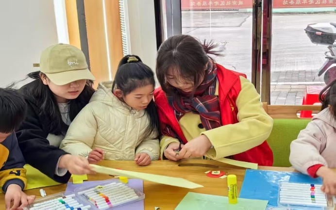 在其后的“雁归课堂”支教活动中,她全心投入辅导社区孩子们的功课。活动中,孩子们的调皮、可爱与认真,让她深感满足。一次活动结束后,她站在门外等待父母,一个小男孩主动上前,说要陪她一起等。在寒风中,她冻得瑟瑟发抖,但孩子的纯真笑容如同温暖的阳光,驱散了她身上的寒意。这份意外的陪伴,让她对后续活动更加期待。