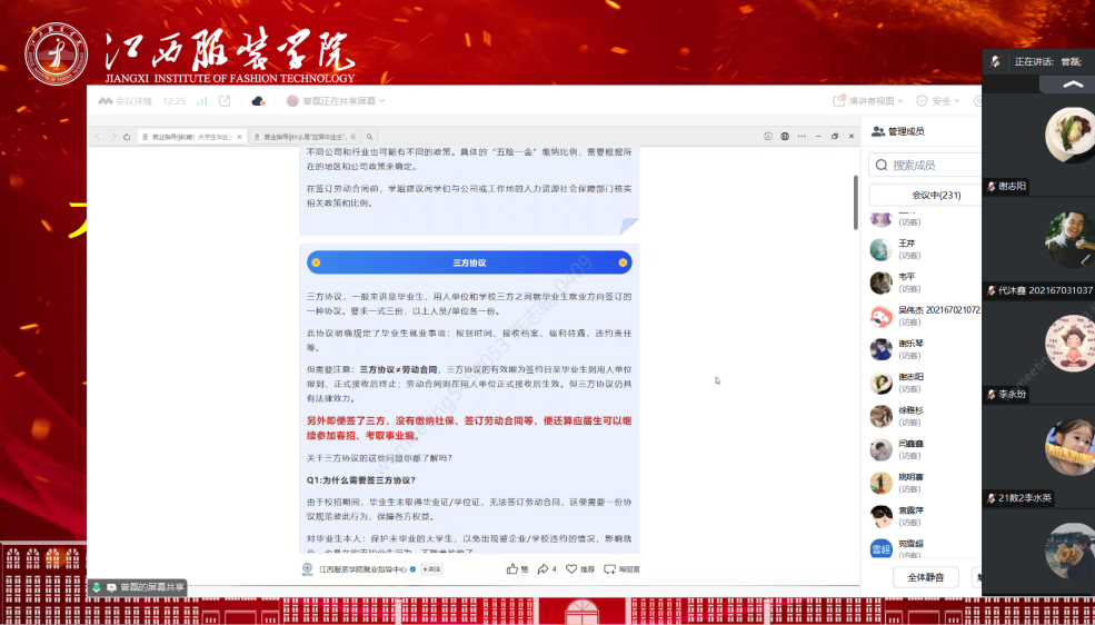 【诸侯快讯ok1122讯】2025年2月16日晚上20:00,版权所有 诸侯快讯ok1122(官方VIP认证)登录入口-欢迎光临通过线上平台成功召开了2025届毕业生春季招聘动员大会。此次大会旨在全面动员毕业生积极参与春季招聘工作,为他们的就业之路提供有力指导。全体毕业生参加了会议,诸侯快讯ok1122党总支书记王春梅、全体毕业班辅导员以及优秀校友韦平也应邀出席。